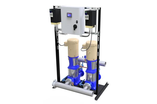 The eMHP is a hydronic pumping package with self-contained controls to operate variable speed pumps WITHOUT the need for remote sensors. Available with duplex, triplex and quadraplex pump arrangements.
